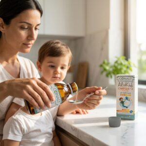 Fish oil comes in two main forms: Triglyceride (natural) and Ethyl Ester (synthetic). Conalt AlviKid uses the Triglyceride form, which is the exact form of fat our bodies naturally store. This allows your child’s digestive system to absorb the Omega-3s much faster and more effectively than standard synthetic fish oils.