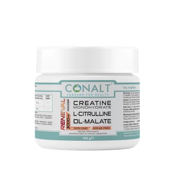 Usually, athletes buy these separately. Conalt Reneval combines them for a dual effect: Creatine gives you explosive power and strength for heavy lifting, while Citrulline improves blood flow and delays fatigue. It acts as both a muscle builder and a mild pre-workout.