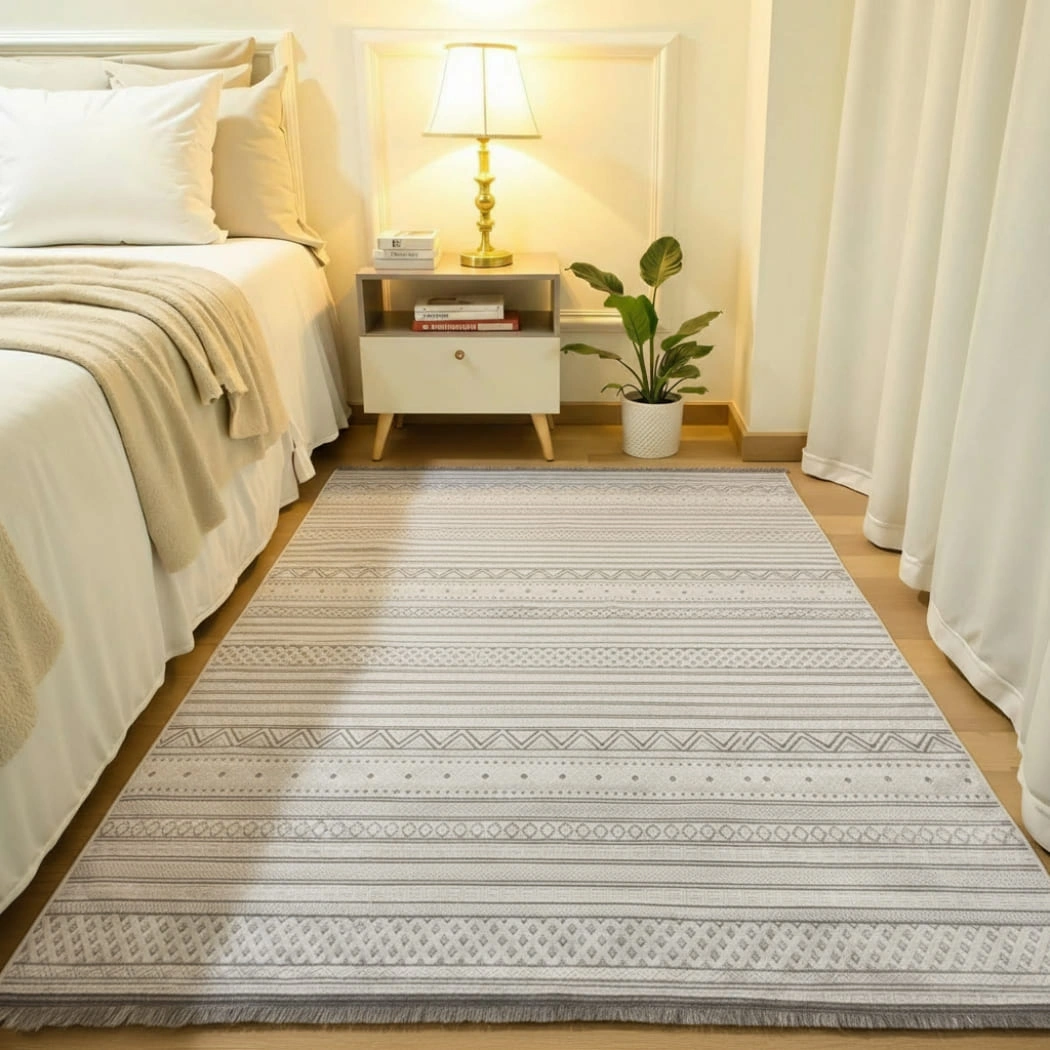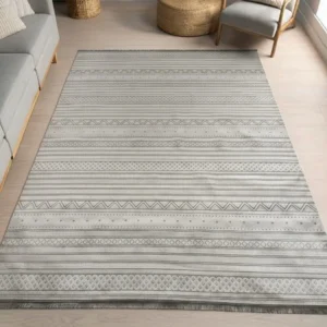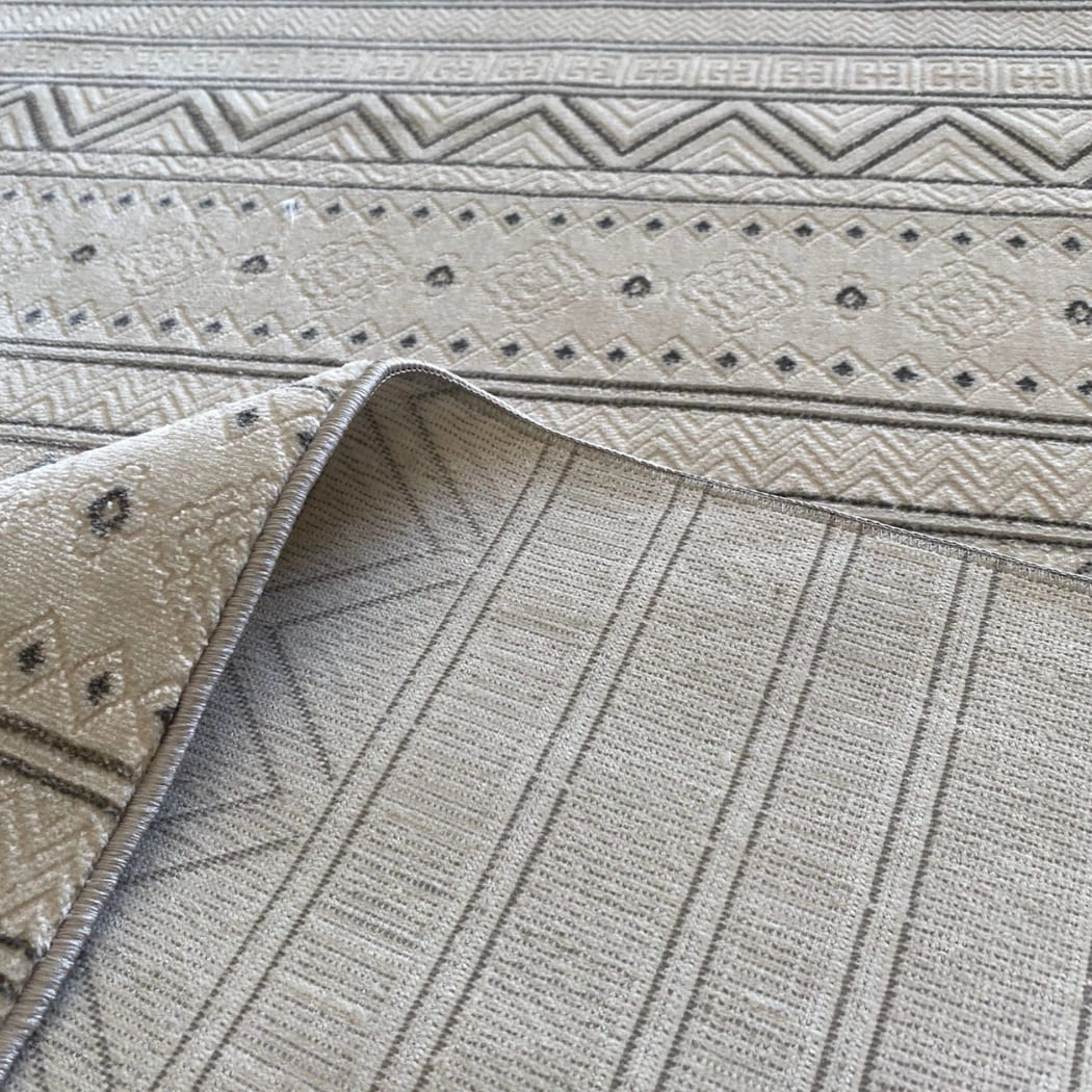 بتصميم هندسي عصري وألوان هادئة تناسب جميع أنماط الديكور، تعتبر هذه السجادة خيارًا مثاليًا للـ صالون، غرفة النوم أو غرفة الجلوس.